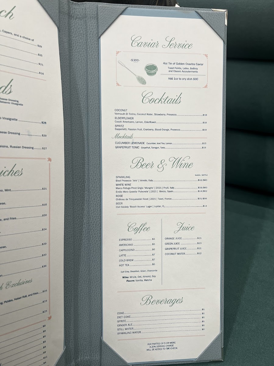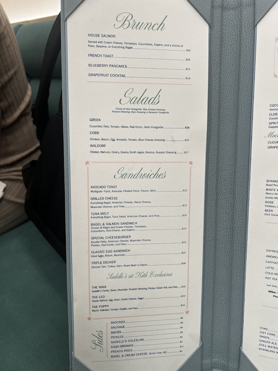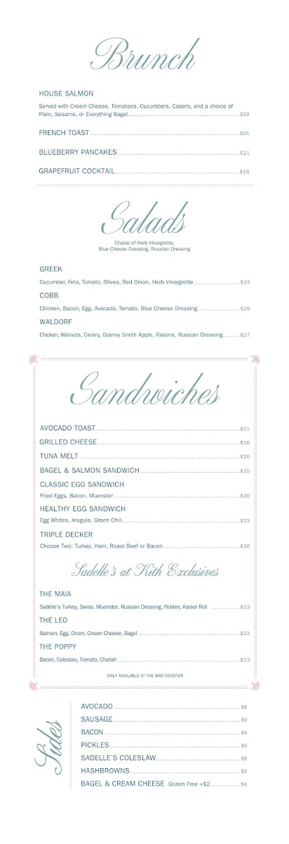Sadelle's at Kith Miami Design District Menu